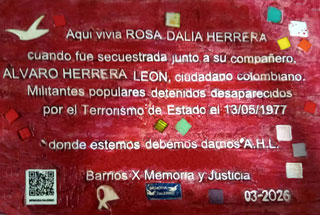 ROSA DALIA HERRERA vivía en Güemes 4265, Palermo, cuando fue secuestrada junto a su compañero, ÁLVARO HERRERA LEÓN, ciudadano colombiano.